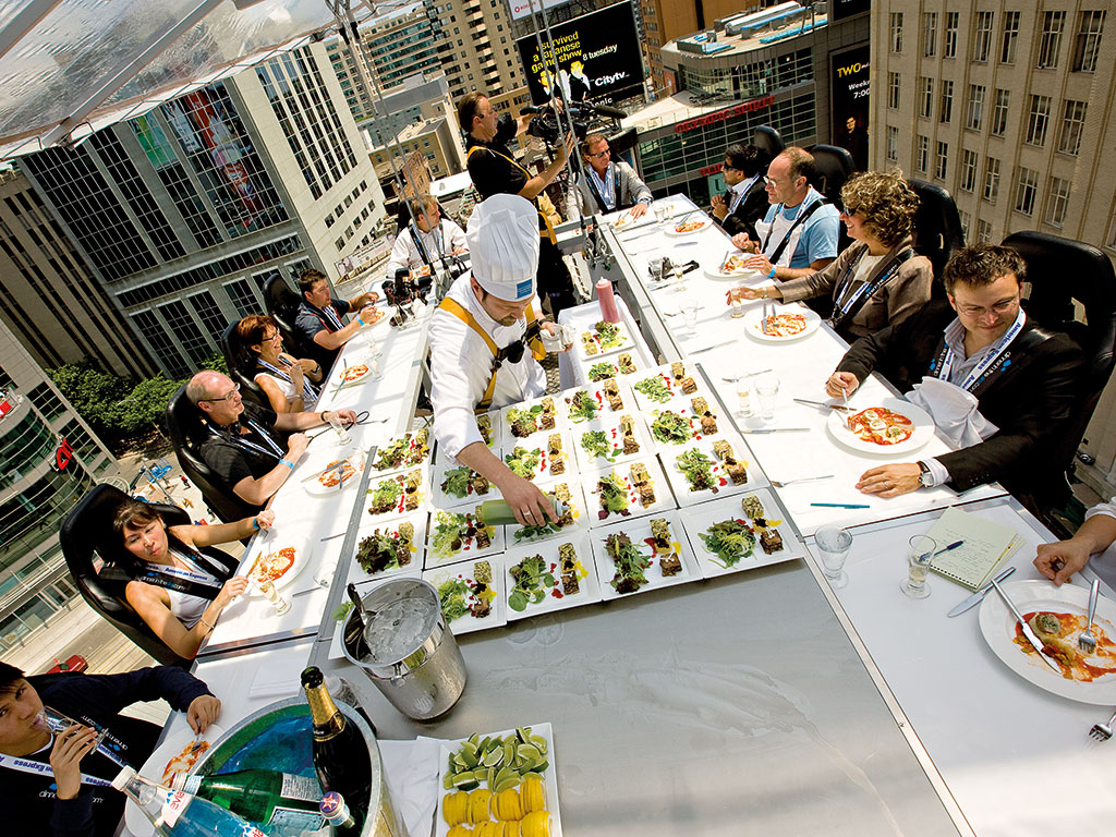 This gravity-defying dining experience is a huge hit with gourmands and thrill-seekers alike. Since its inauguration, the team behind this daredevil dinner table has organised more than 5,000 events in some of the world’s most iconic cities. “All these events were unique, one of a kind”, reads the company’s website. “We can cite, for example, the event organised in the skies above Monaco for Prince Albert with France’s most highly ‘starred’ chef, Joel Robuchon, in command. But [we] also introduced new creative concepts, such as a Beach Bar in the Sky; an Opera in the Sky, with Lesley Garrett singing at the Tower of London; an Internet Café in the Sky for Nokia in Las Vegas; and a Poker Match in the Sky at the Grand Prix Moto of Jerez.”