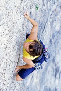 Bouldering is usually defined as climbing below a height from which a fall would not cause serious bodily harm – the upper reaches would be around seven metres. Above this it becomes free-climbing – otherwise known as free soloing. Because falling from this height doesn’t usually result in death, boulderers can free themselves from using a rope and harness and concentrate solely on maximum gymnastic difficulty.