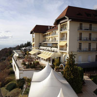 Half a mile above Montreux-Vevey and overlooking the beautiful Lake Geneva, Le Mirador Kempinski offers high class luxury service in a breathtaking setting, with a simply magnificent view of the Alps above and lake below.