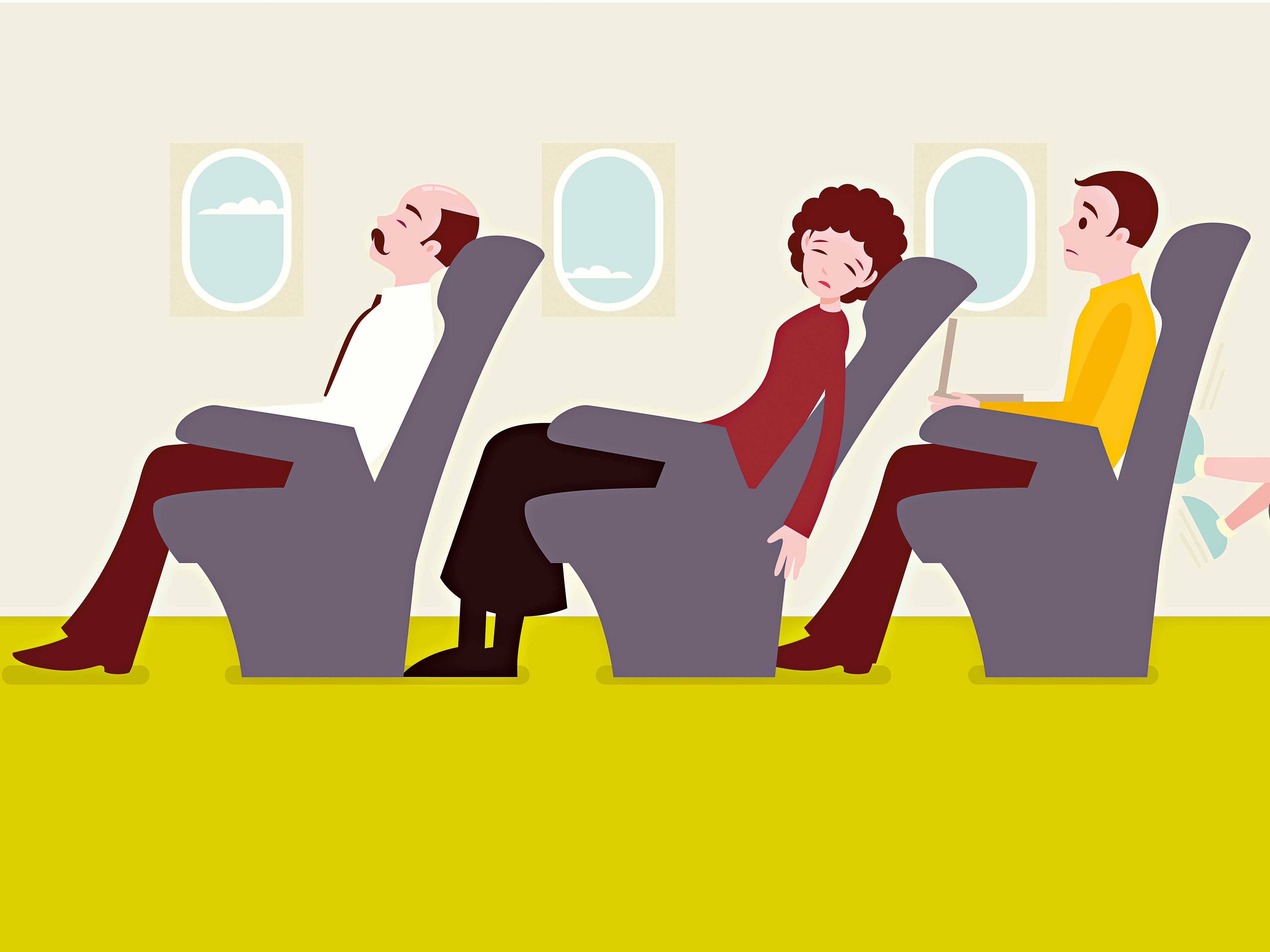 As the seatbelt sign turns off, it appears, so do some people’s manners. Carrying around 300 passengers per transatlantic flight, aeroplanes are very public spaces, but certain passengers feel content to make themselves entirely at home. In an apparent attempt to recreate their own living rooms at 35,000ft, passengers can often be found in various stages of undress, loudly munching on snacks and conducting animated cross-aisle conversations with other members of their party. While this behaviour might be considered unacceptable on other forms of public transport, in the air, it seems, anything goes.